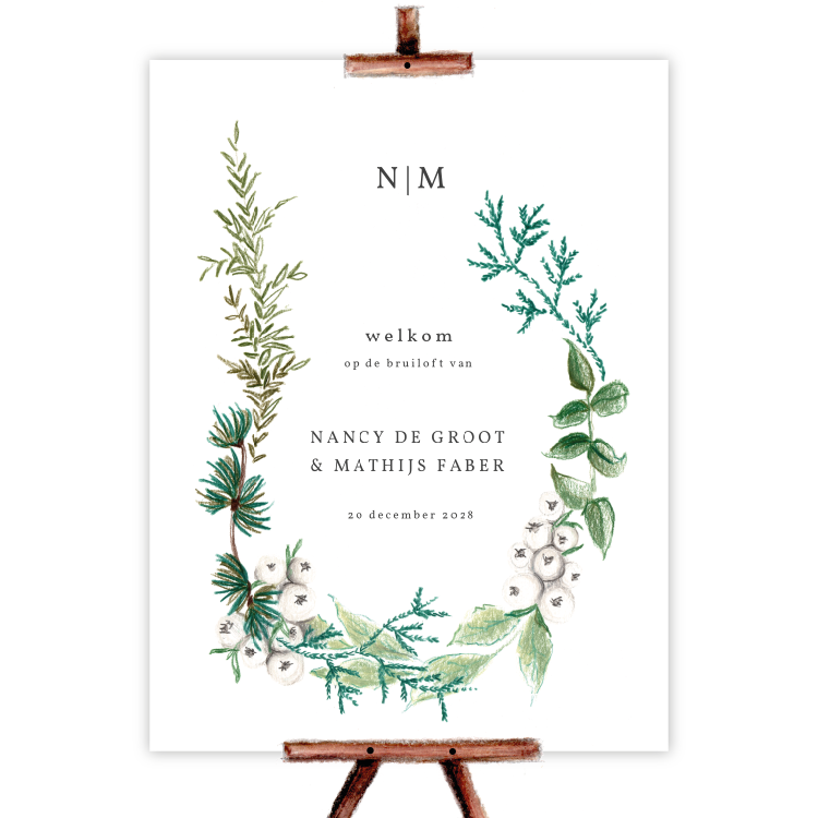 welkomstbord winter krans groen wit