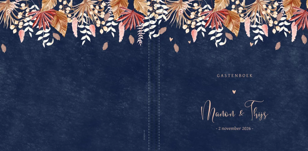 Donkerblauw gastenboek droogbloemen blauw vierkant