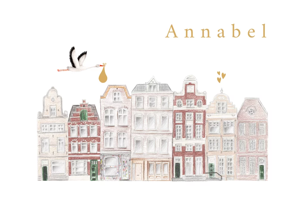 Raambord 60x40 met grachtenpandjes en vliegende ooievaar voor een meisje