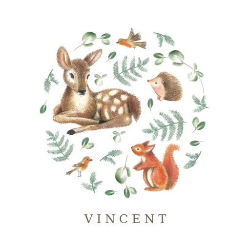 geboortetegeltje 15x15 bosdieren rond jongen met hertje roodborstje