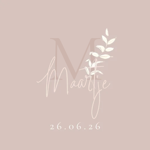 geboortetegeltje 15x15 voor een meisje met een roze achtergrond letter en takje