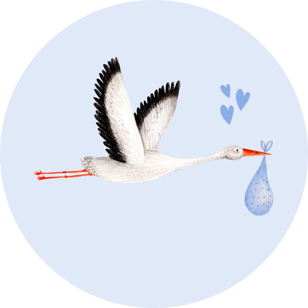 Sluitzegels ooievaar blauw - 25 stuks op 1 vel 35mm Pas makkelijk het design en de kleur aan naar eigen wens met deze sluitzegels ooievaar blauw. Deze sluitzegels zijn perfect voor een vrolijk geboortekaartje.