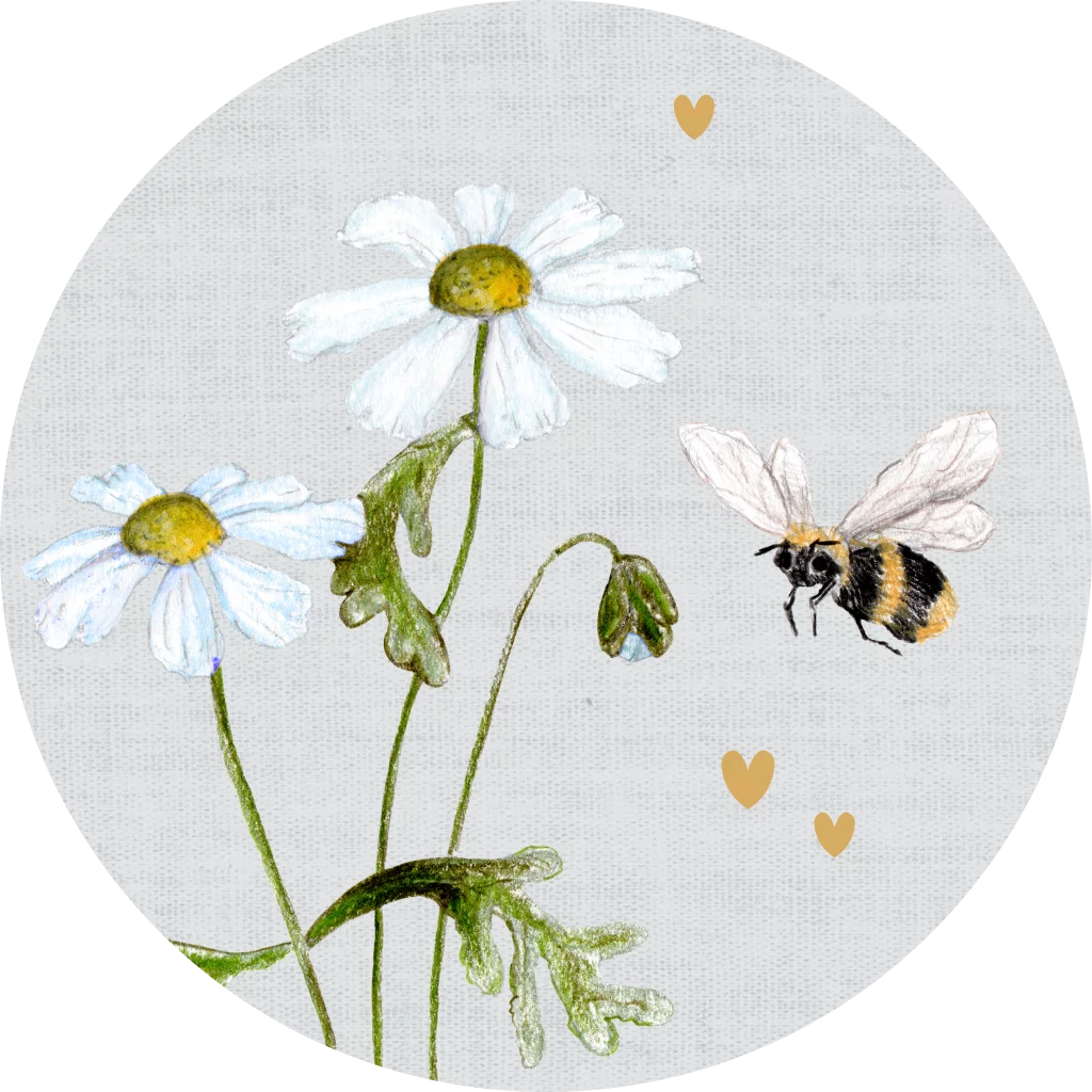 Sluitzegels 25 stuks madeliefje bijtje blauw
