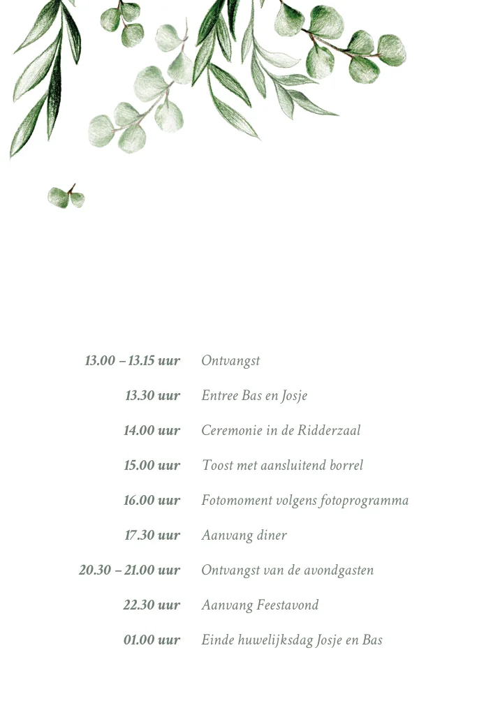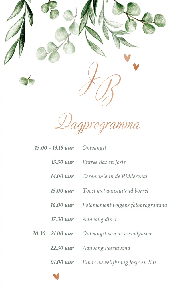 Dagprogramma groene takjes en blaadjes bijpassend bij de serie green love