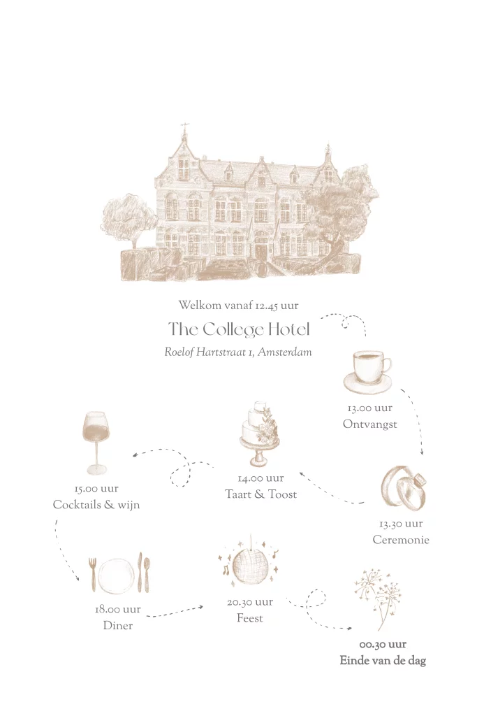 programmakaart trouwlocatie klassiek chique met icoontjes en andere mooie details met getekende locatie