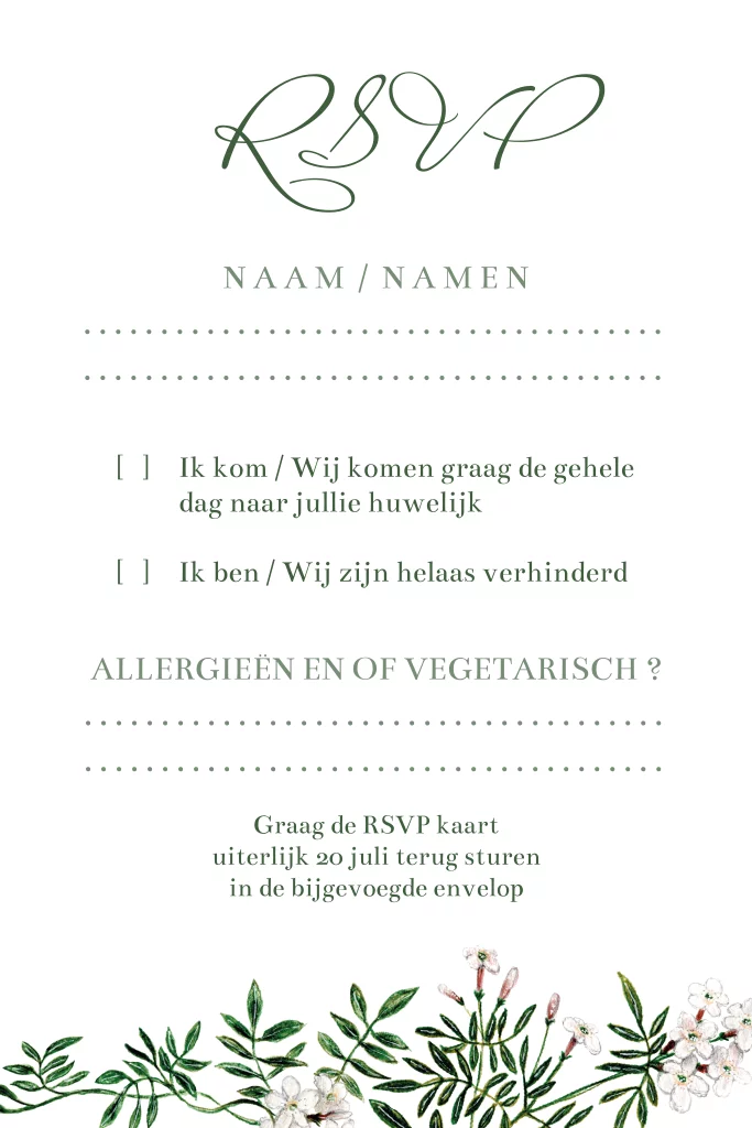Super chique deze RSVP kaart uit de trouwhuisstijl JASMIJN.