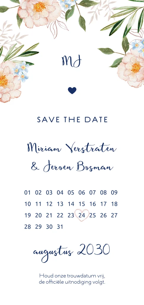 Romantische save the date met kalender