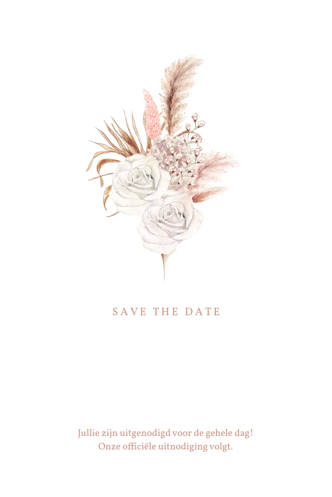 Save the date met droogbloemen rozen en rosefolie