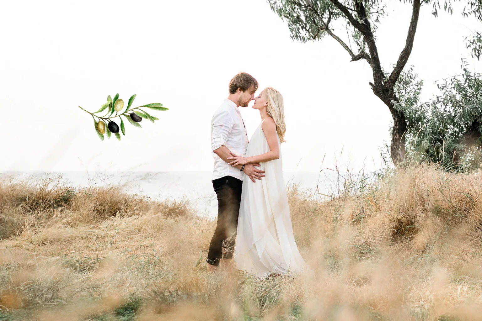 Save the date met foto en chique sierlijke olijftakjes, stijlvolle groene kleuren in combinatie met een sierlijk lettertype. Chique en stijlvol!