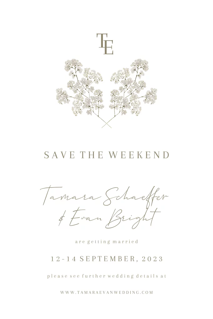 Save the date kaart klassiek modern getekend gipskruid Modern, handgetekend en chique!