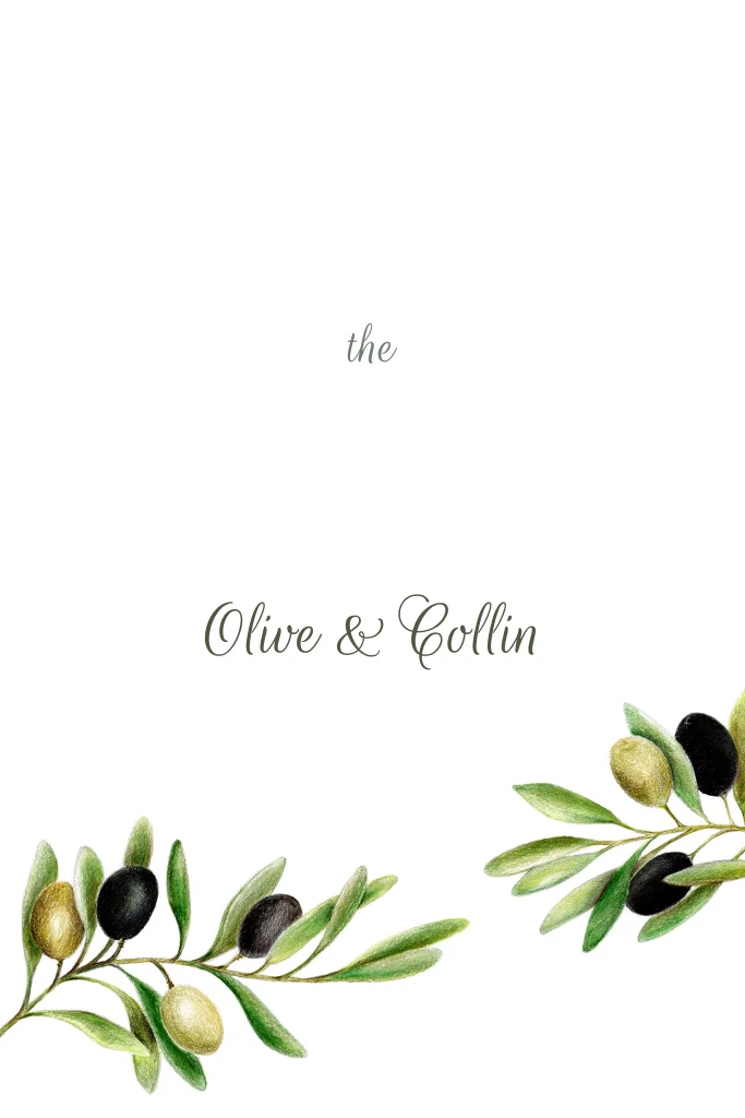 Save the date met Chique sierlijke olijftakjes, stijlvolle groene kleuren in combinatie met een sierlijk lettertype. Chique en stijlvol!