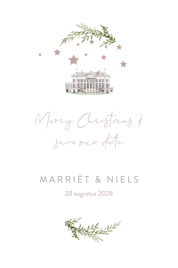 kerst save the date kaart chique getekend trouwlocatie parc broekhuizenTotaalprijs: 0 |