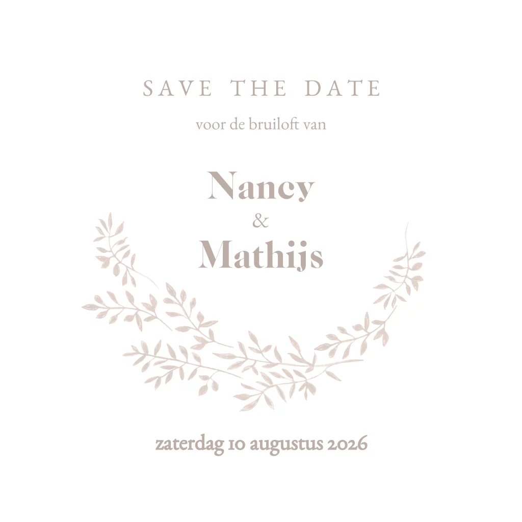 Save the Date getekende takjes krans beige