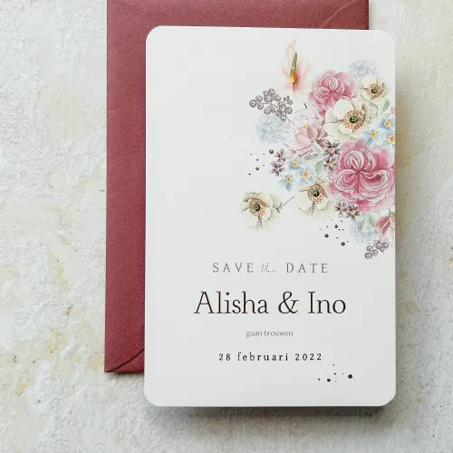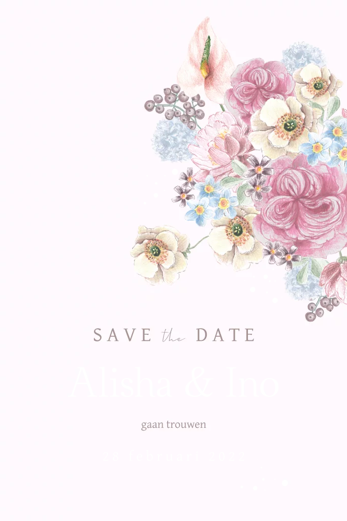 save the date kaart pastel bloemen romantisch goudfolie
