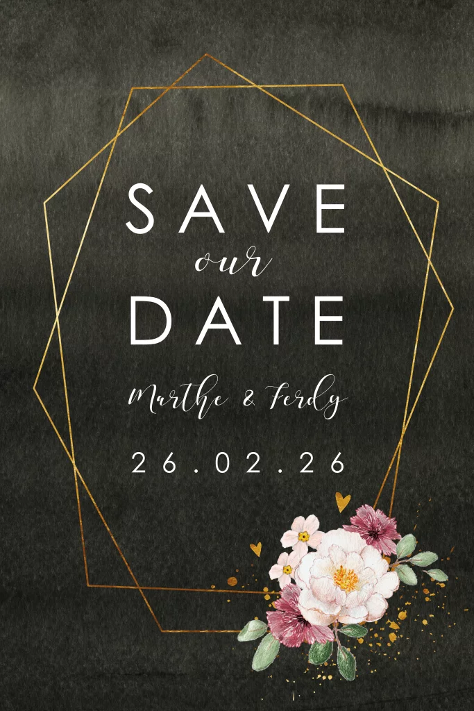 Save the Date Moody Geometrisch Flowers zonder foto.