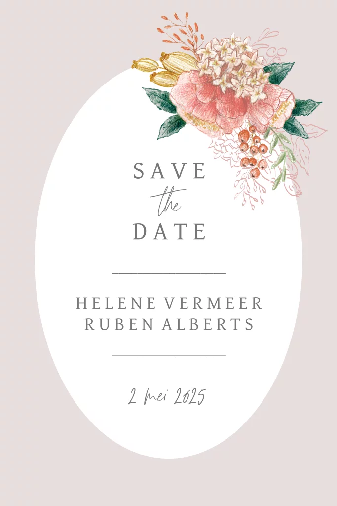 Save the Date ovaal bloemen getekend illustratie