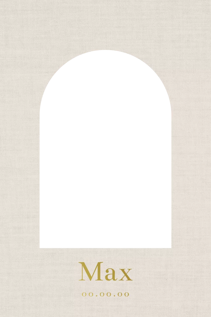 geboortekaartje voor een jongentje met een uitsnede met een boogvorm. Het kaartje is afgewerkt met goudfolie.