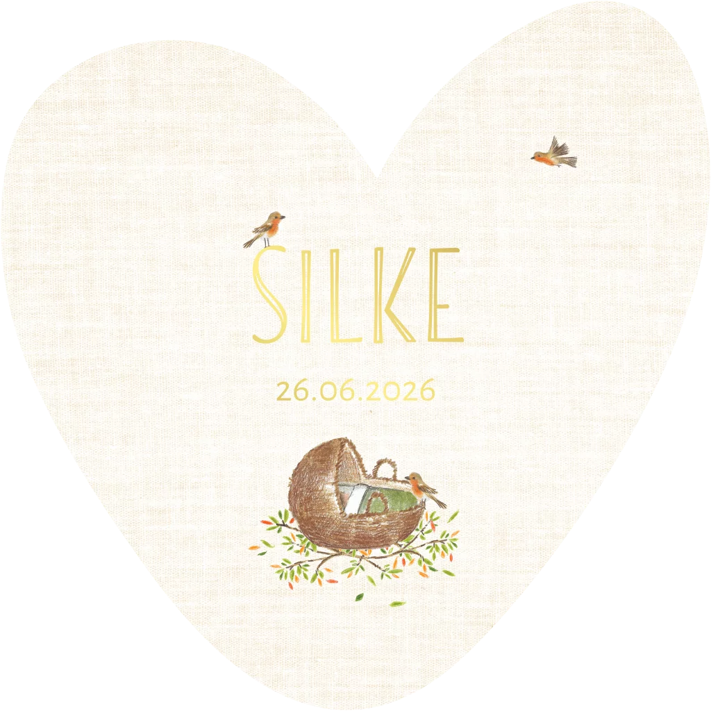 Op zoek naar een origineel getekend geboortekaartje? Dan is dit kaartje geïllustreerd met een wiegje en roodborstjes. Dit kaartje is afgewerkt met goudfolie met een speciale vorm perfect voor jullie meisje of jongen. Uniek, vrolijk en ontzettend lief.
