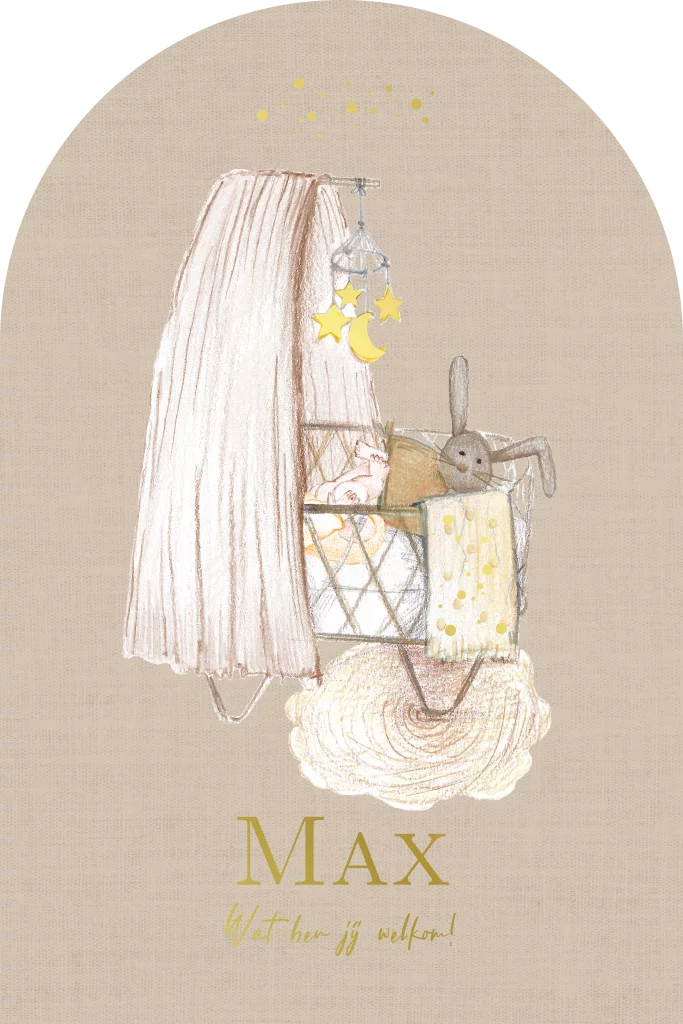 geboortekaartje jongen wiegje baby neutraal goudfolie vorm boog