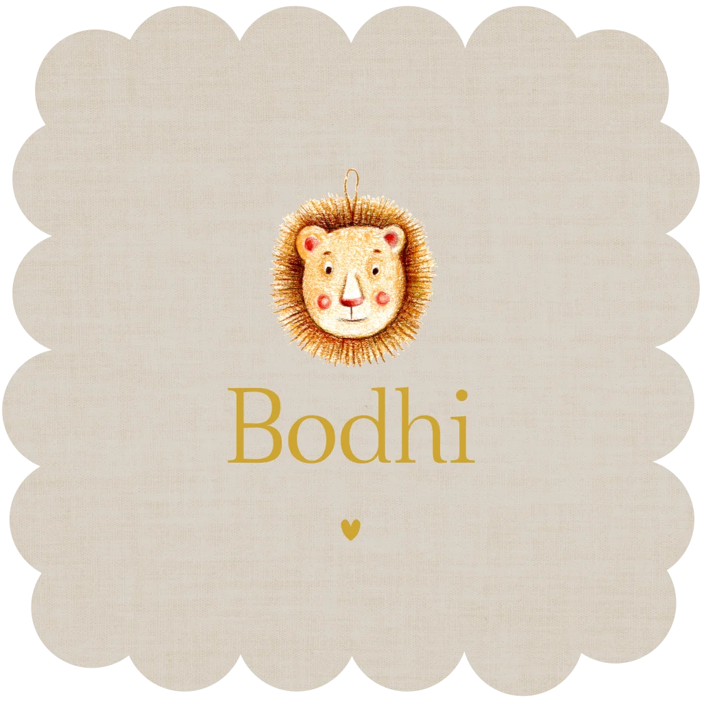 Op zoek naar een origineel geboortekaartje? Dan is dit kaartje met bijzondere golfjes biscuit vorm perfect voor jullie kleine ventje! Leuk afgewerkt met een getekend blaadje en goudfolie.