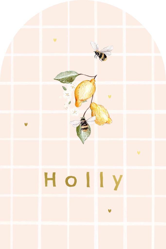 geboortekaartje meisje citroen bijtje ruit goudfolie boogvorm