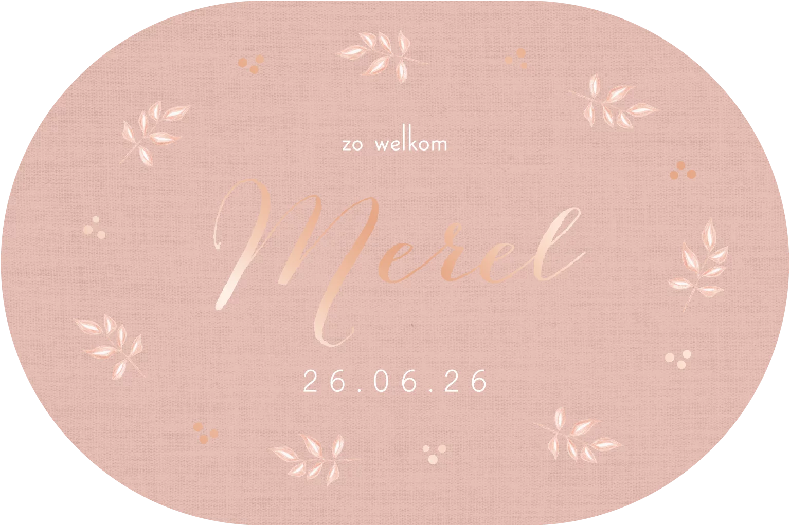 Op zoek naar een origineel getekend geboortekaartje afgewerkt met rosegoud folie in bijzondere vorm? Dan is dit ovale kaartje geïllustreerd met takjes perfect voor jullie kleine meisje! Uniek, vrolijk en ontzettend lief.