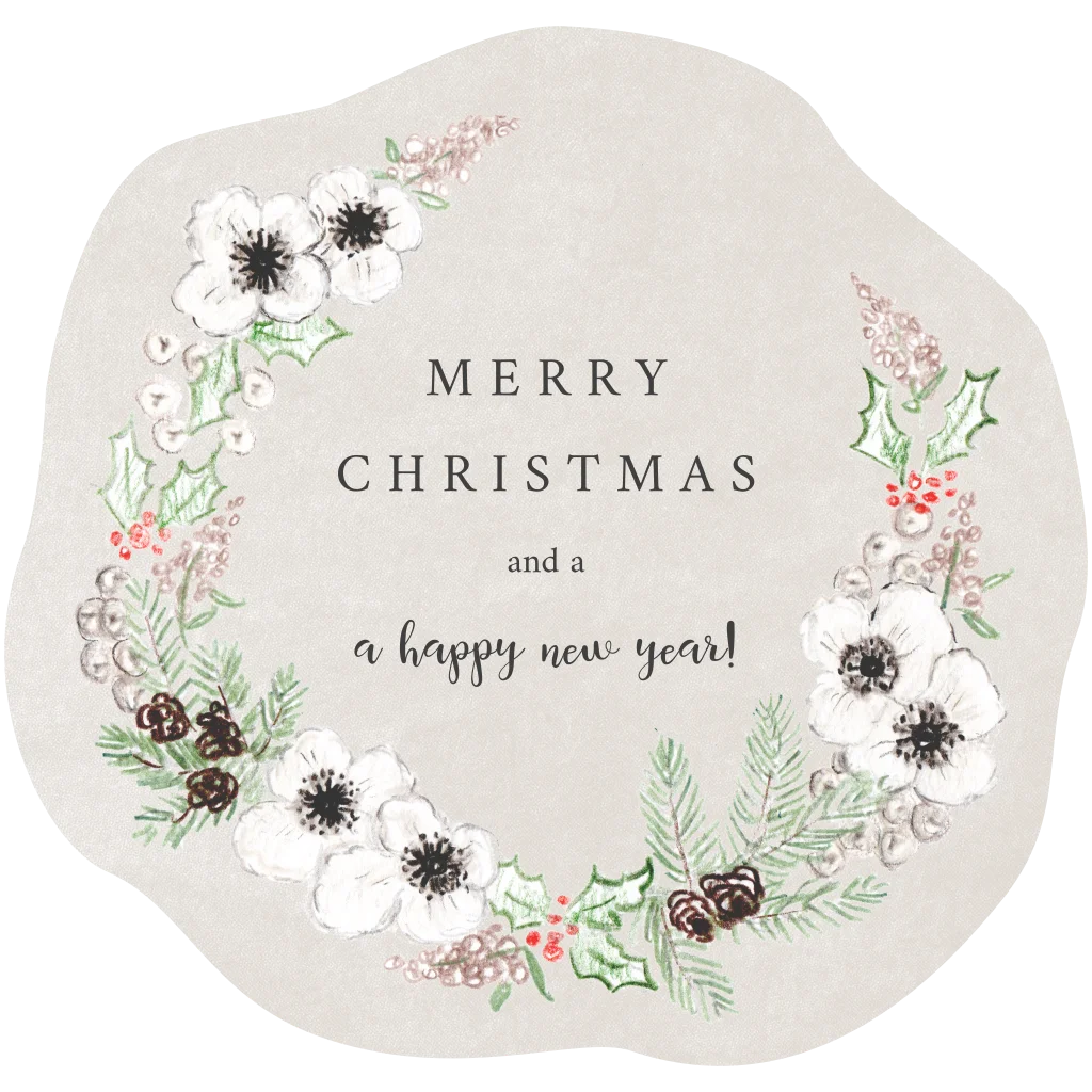 Op zoek naar een origineel getekende kerstkaart? Dan is dit unieke kaartje geïllustreerd met een winter bloemenkrans door Marjolein perfect voor jullie!