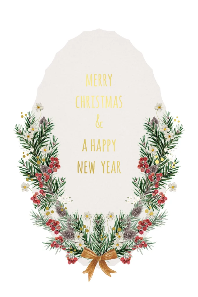 Op zoek naar een origineel getekende kerstkaart in een bijzondere vorm? Dan is dit unieke kaartje geïllustreerd met een kerstkrans en afgewerkt met goudfolie wellicht wat voor jullie.