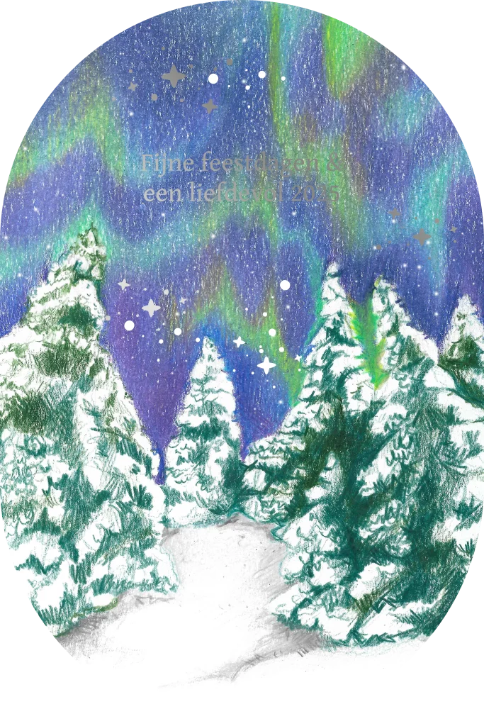 kerstkaart noorderlicht kerstboom originele vorm ovaal