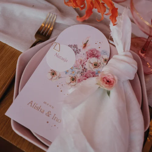 Menu getekende bloemen pastel goudfolie