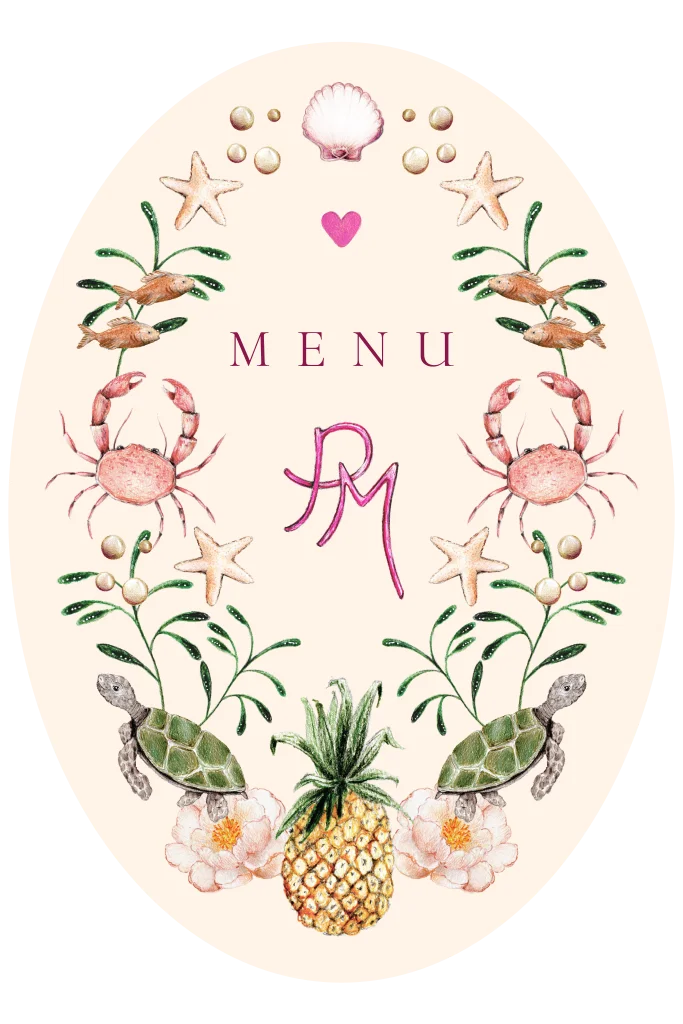 menukaart ovaal zee golf strand schelp uit de serie beach love