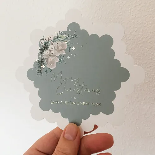save the date kaart groen winter originele vorm sneeuw ster