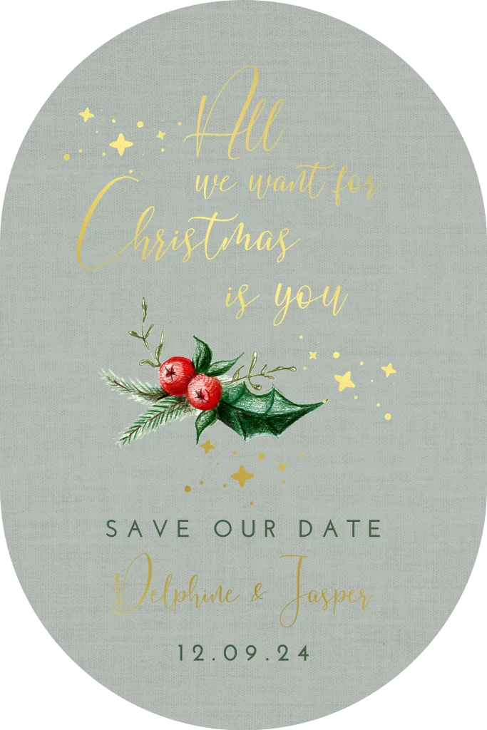 save the date kerstkaart klassiek hulst folie originele vorm