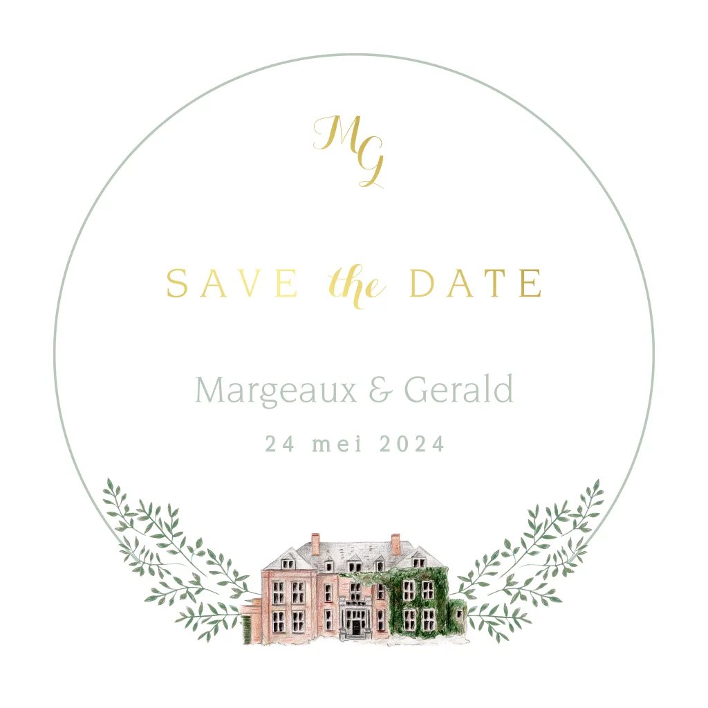 save the date trouwlocatie landgoed huize bergen krans vorm rond