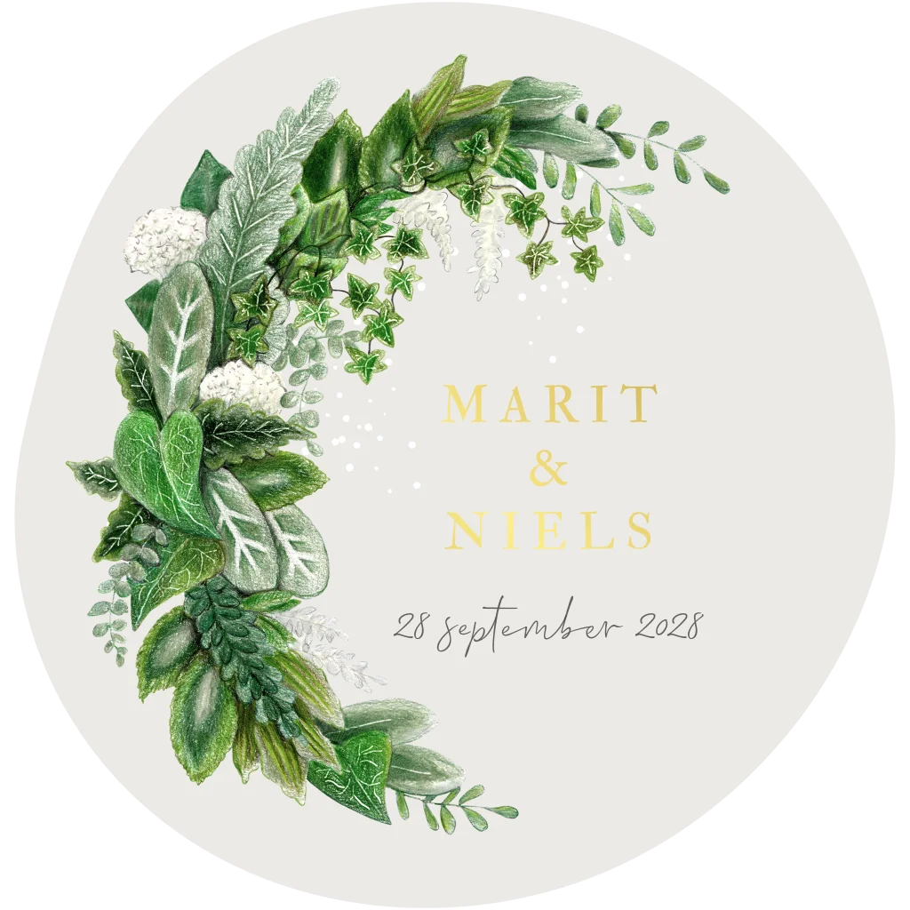 trouwkaart botanisch groen originele vorm rond abstract