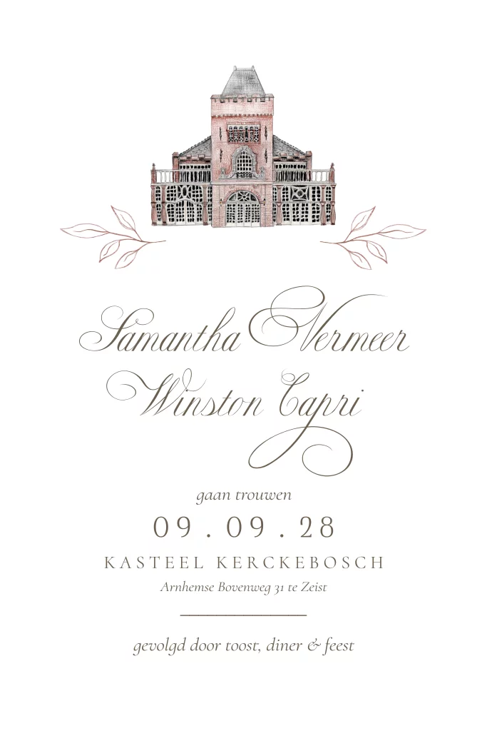 Trouwkaart trouwlocatie Kerckebosch originele vorm klassiek