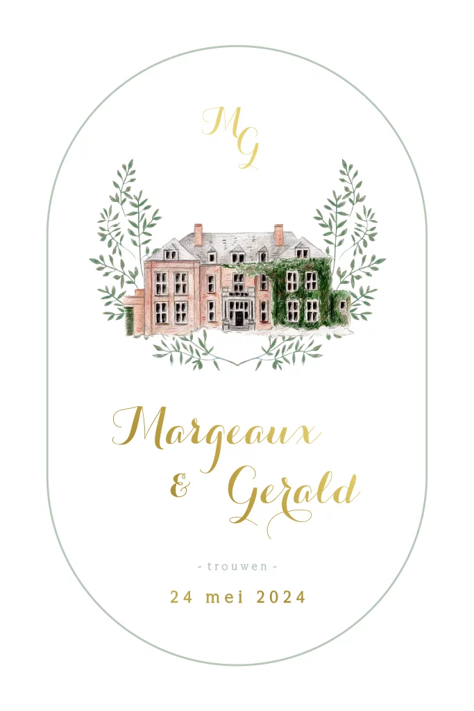 trouwkaart trouwlocatie landgoed huize bergen krans vorm ovaal