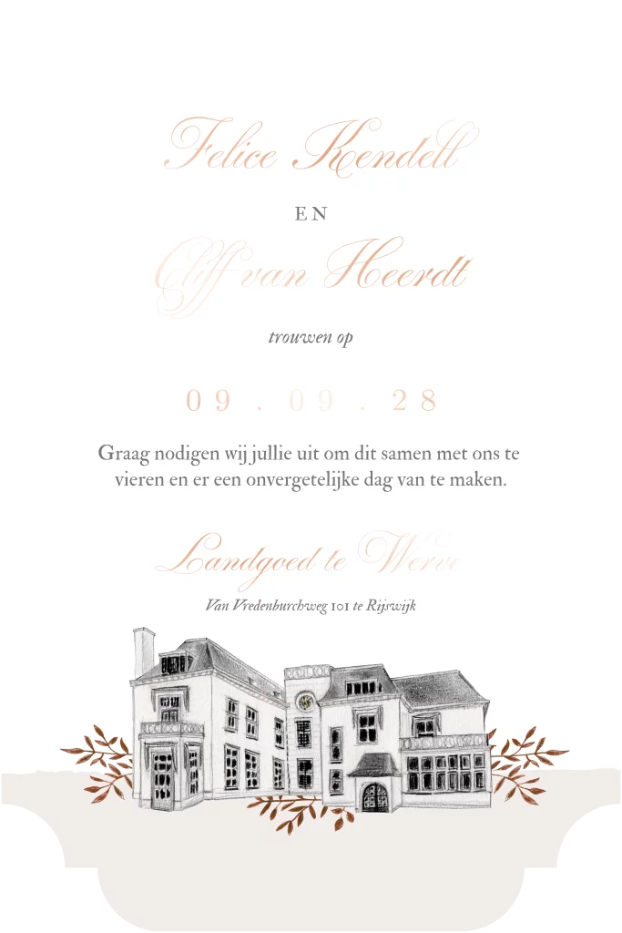 Trouwkaart trouwlocatie landgoed te werve klassieke vorm rosefolie
