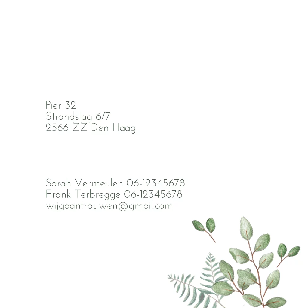 Extra informatie kaartje romantisch met pastel bloemen en blaadjes. Gebruik dit kaartje bij je trouwkaart om zo extra informatie aan jullie gasten te geven. Leuk met een lint of een touwtje om het verzendklaar te maken.