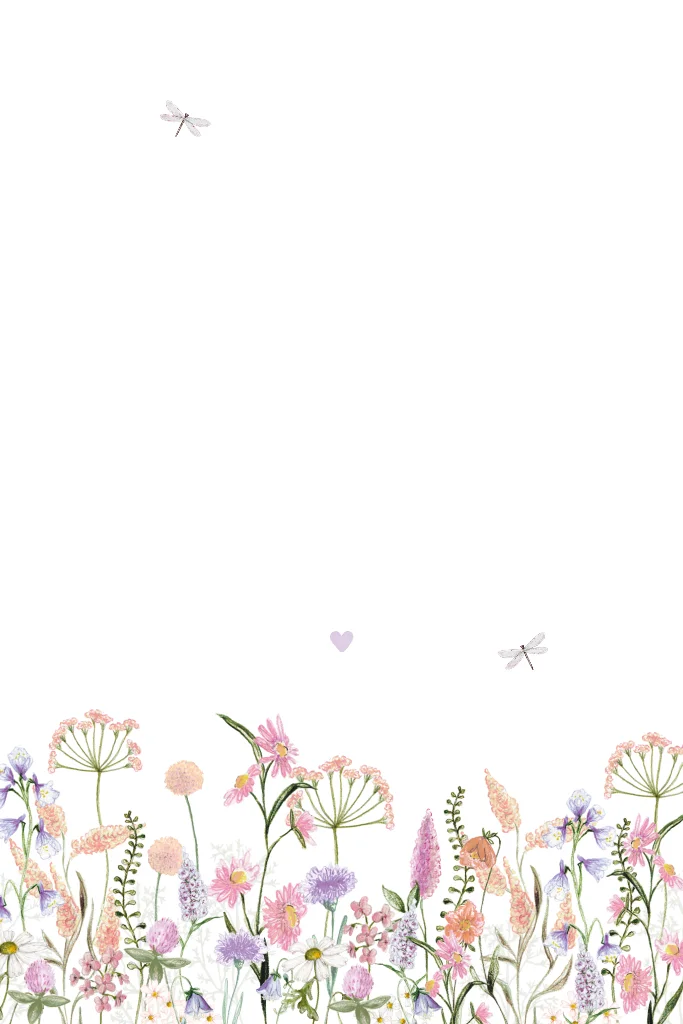 Inleg Trouwkaart veldbloemen lila perzik libelle rosefolie
