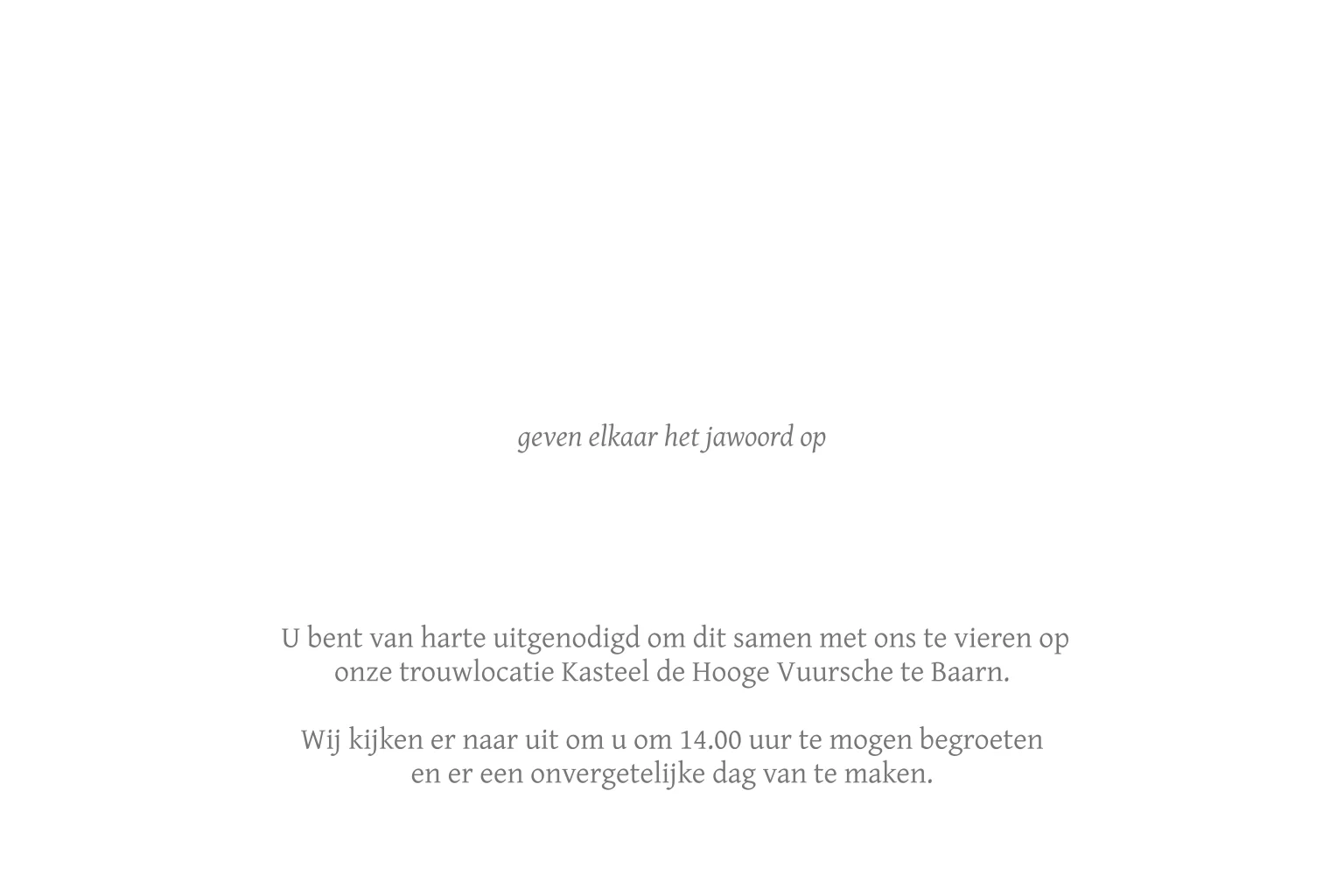 Stijlvolle trouwkaart met een lijntekening van de trouwlocatie met goudfolie. Op deze trouwkaart is Kasteel de Hooge Vuursche afgebeeld.