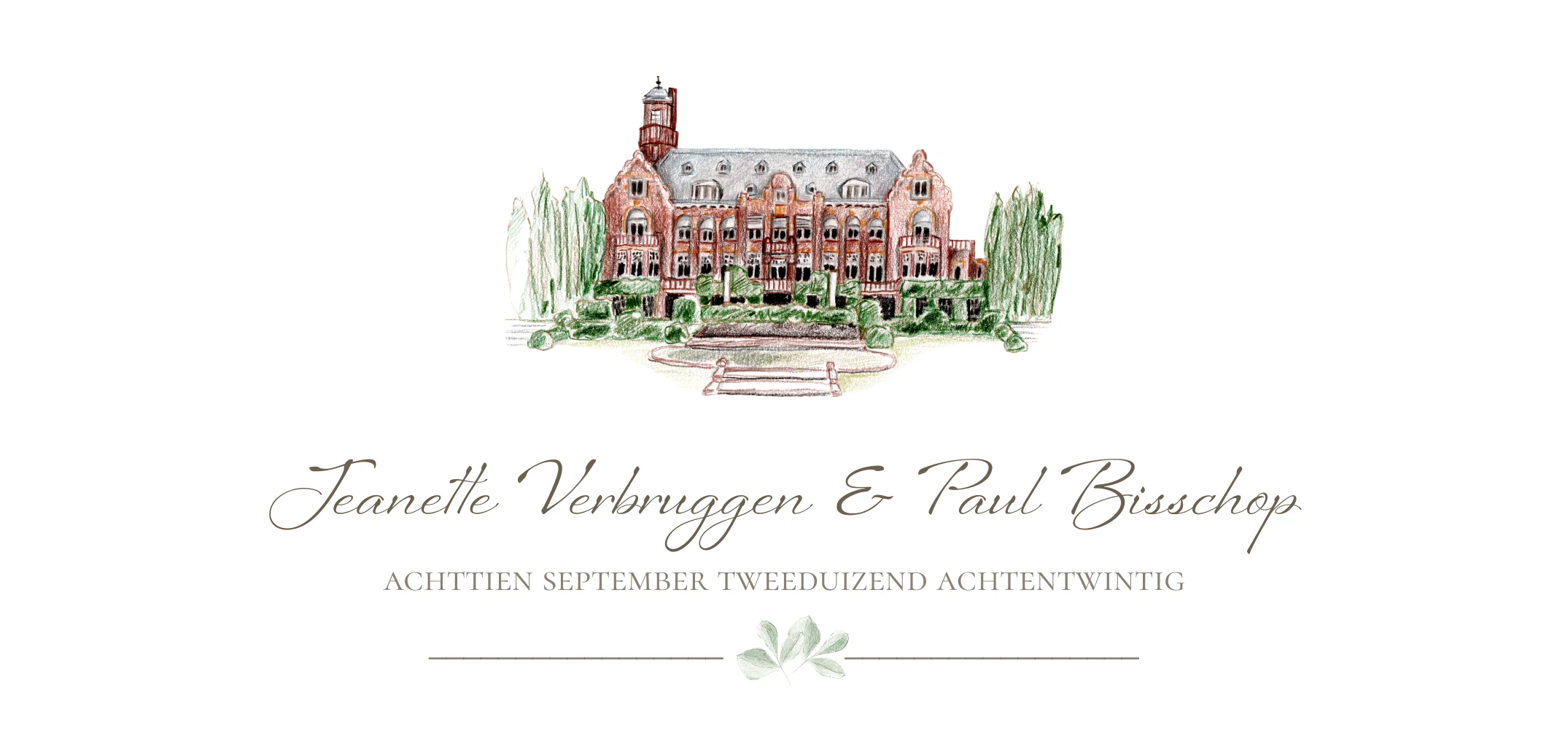Chique Trouwkaart Getekende Trouwlocatie Kasteel de Hooge Vuursche