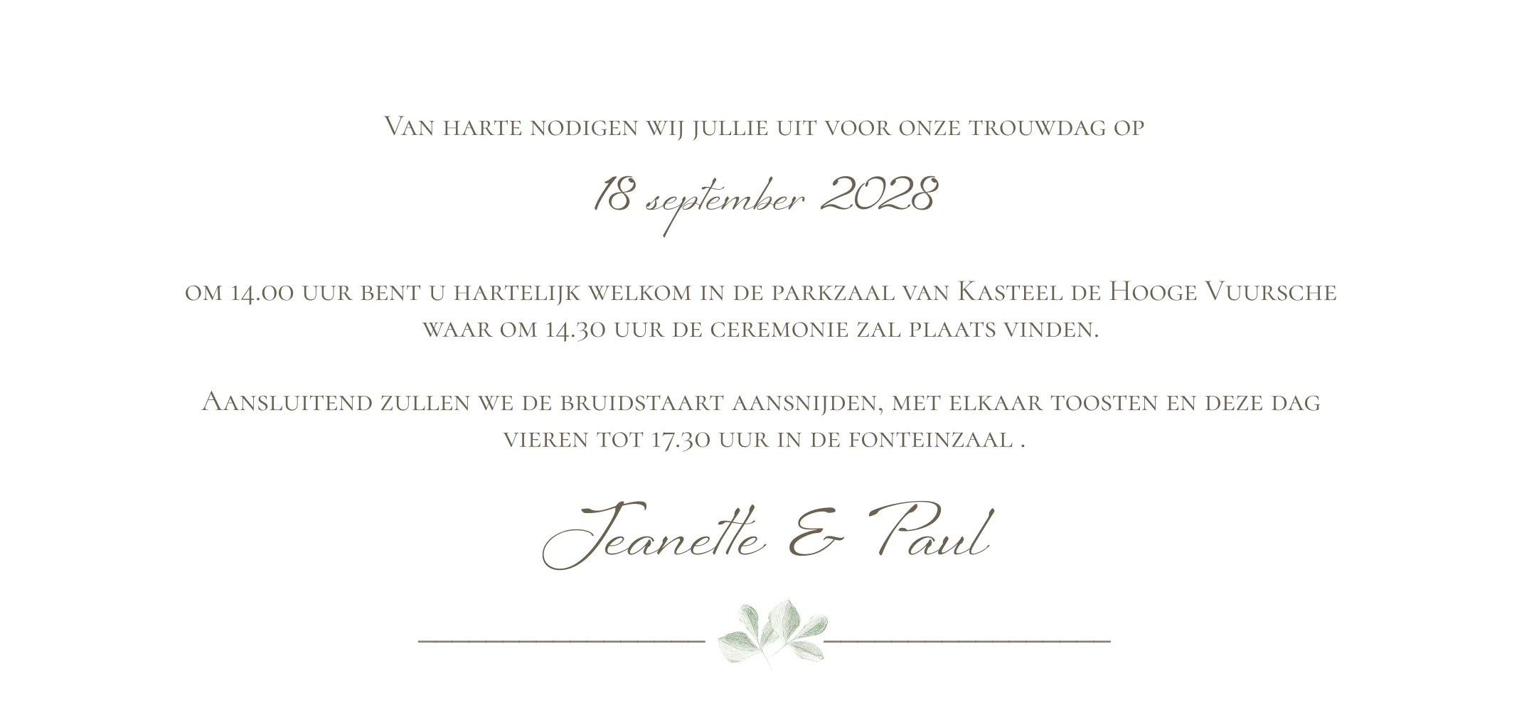 Chique Trouwkaart Getekende Trouwlocatie Kasteel de Hooge Vuursche| Totaalprijs: 0 |