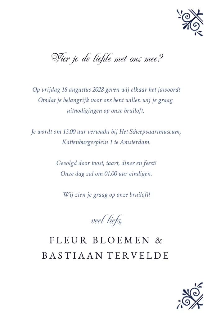 Trouwkaart Delfts blauw illustratie Scheepvaartmuseum