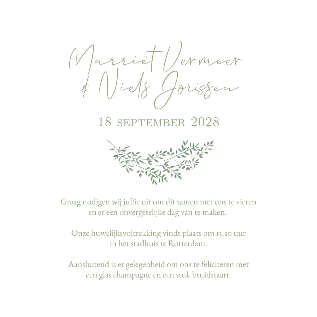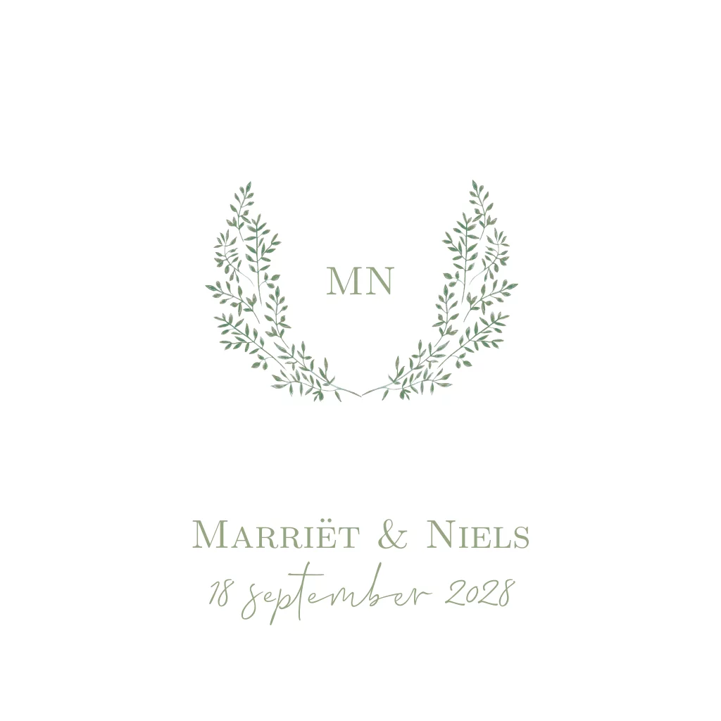 Trouwkaart getekende takjes krans logo groen