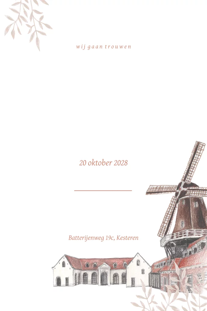 Trouwkaart met de trouwlocatie molen de zwaluw