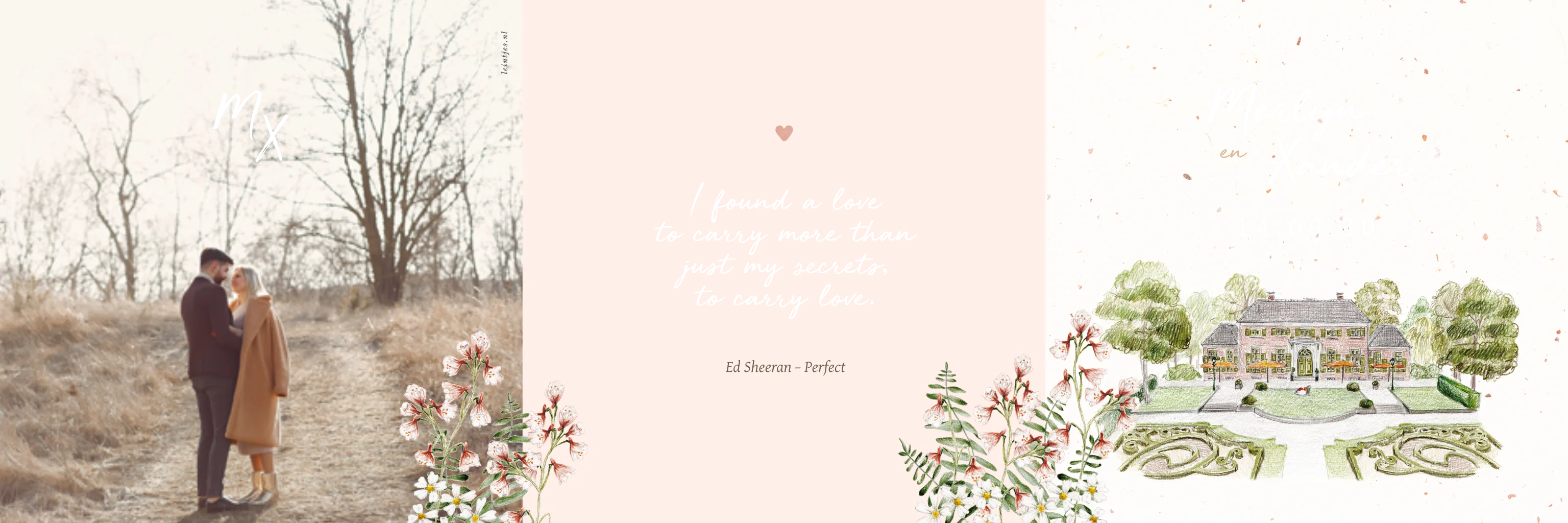 drieluik zigzag trouwkaart trouwlocatie foto bloemen