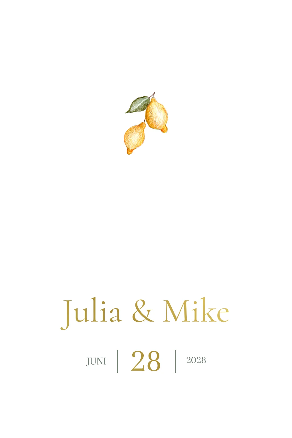 De dubbele boogopzet maakt deze trouwkaart extra bijzonder en geeft ruimte voor een mooie indeling van jullie namen, trouwdatum en overige details. De citroenillustraties brengen een vrolijke en verfijnde touch, ideaal voor een zomerbruiloft, destination wedding of een bruiloft met Italiaanse of Franse invloeden.