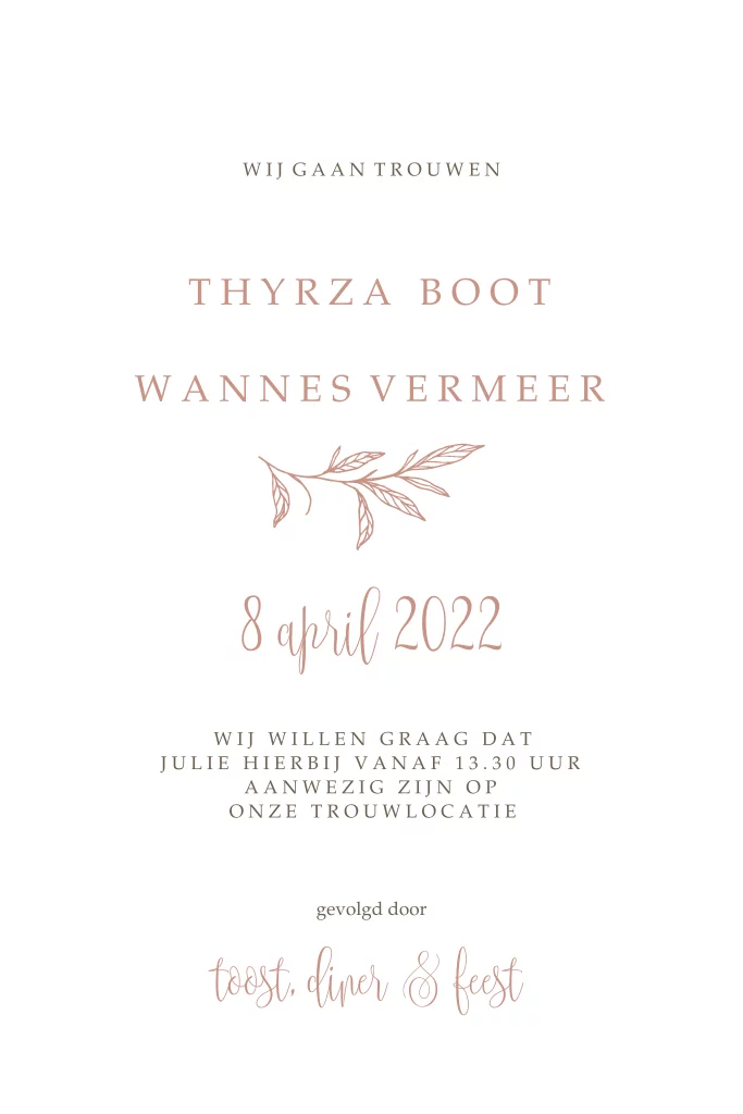 Trouwkaart Klassiek Sierlijk takje Blush