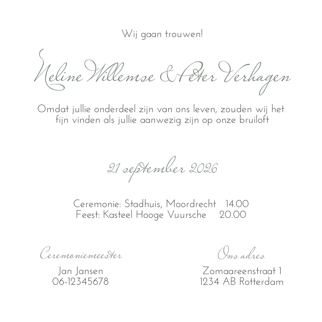 Stijlvolle trouwkaart met foto